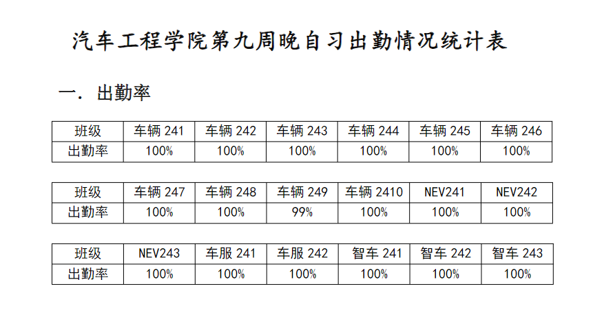 【督学正风】9428cn太阳集团古天乐2024-2025学年第一学期第九周晚自习出勤情况